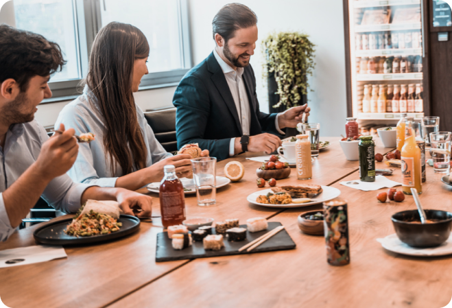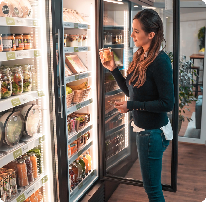 Fritzer’s Freshness transforms break time into feel-good time! We bring smart catering solutions directly to your company. With our intelligent refrigerators and micro canteen, we offer healthy meals – fresh, regional, and without any staff effort.